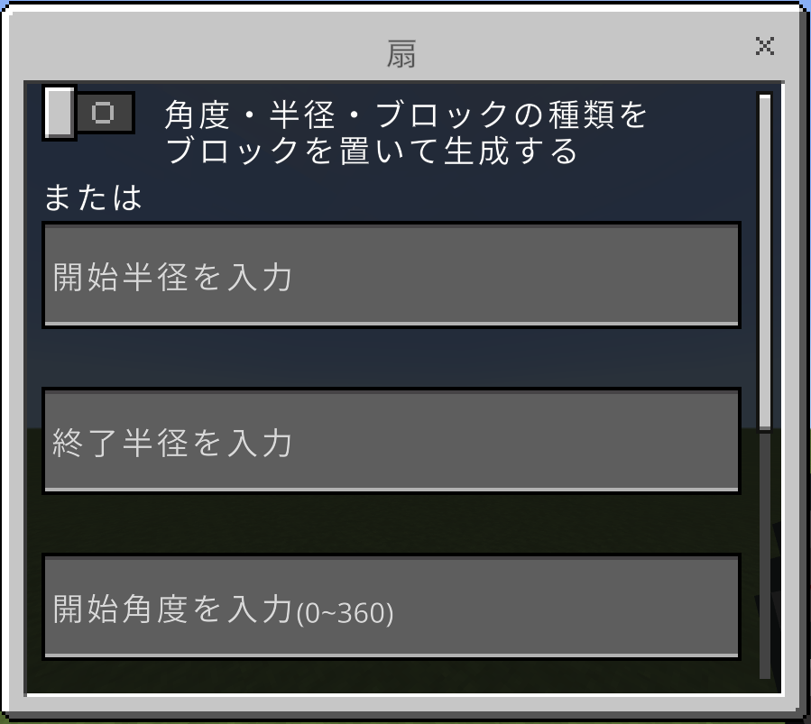 の場合は、ブロックを2回置くことによって、その部分に置いたブロックで扇型を生成します。