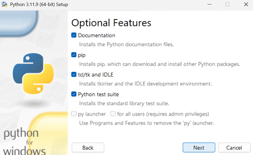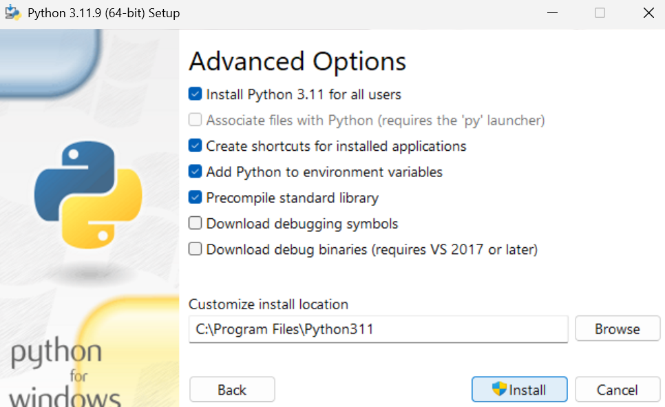 2. Python 3.1x.xxのインストーラを起動してCustomize installation をクリック
